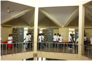 The pride of our college infrastructure is our “magnificent library building and the invaluable volumes in it”. The Library building stands majestically as a focal point amidst a beautiful garden with sylvan surroundings. There are numerous plants encompassing the building from the heat of the scorching sun. The flowering plants, the sylvan surroundings and the landscape of the college campus visible through the glass panels of the library building gives a veritable feast to the eyes of the readers at the library.